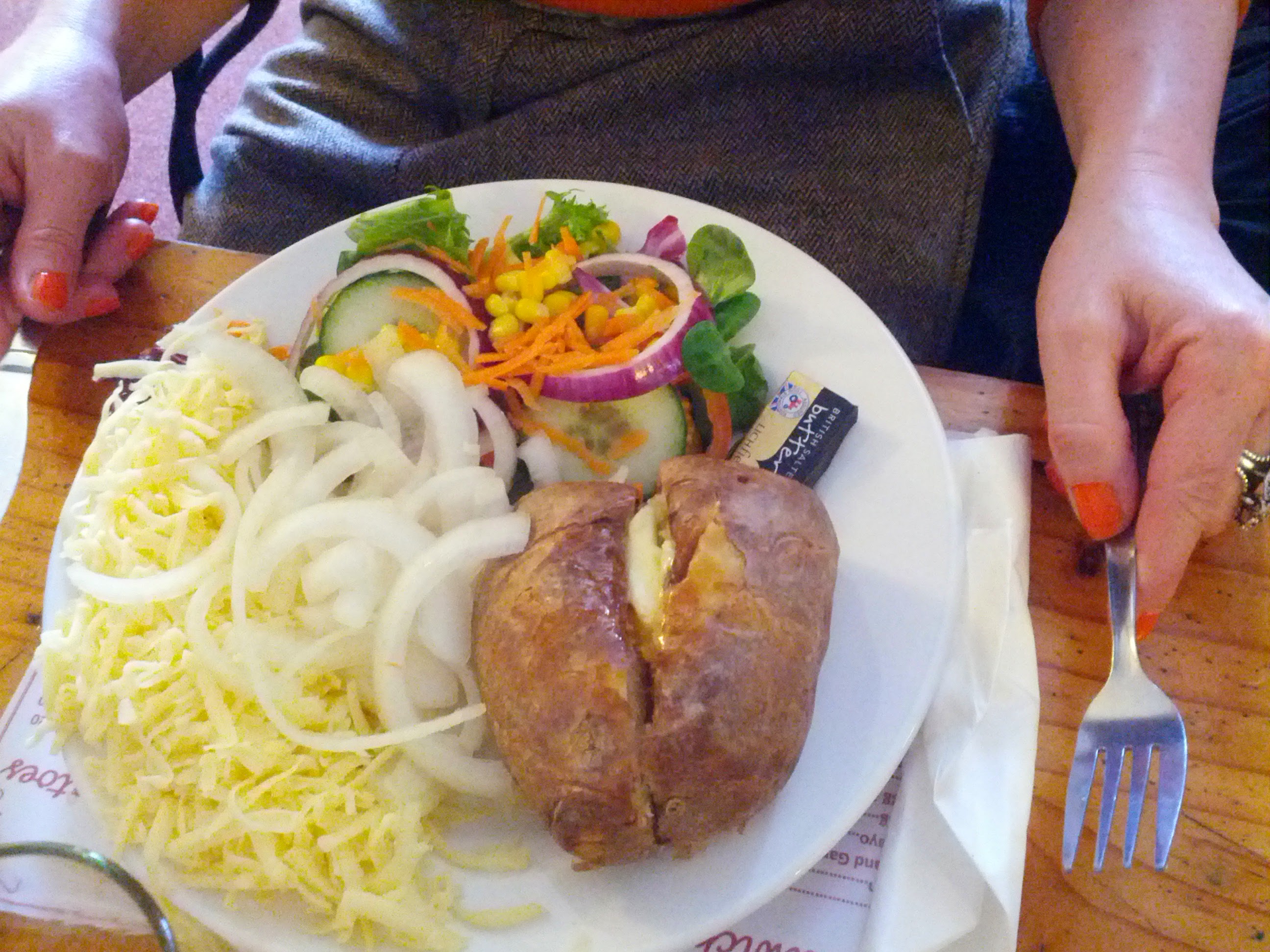 The full walk was 9 miles. By the time we reached the Swan Inn we were famished so stopped for a bite to eat. The Swan is a traditional pub but it seems to have taken on some gastropub traits. Note the ‘deconstructed’ Cheese and Onion Baked Potato that Sarah was served: